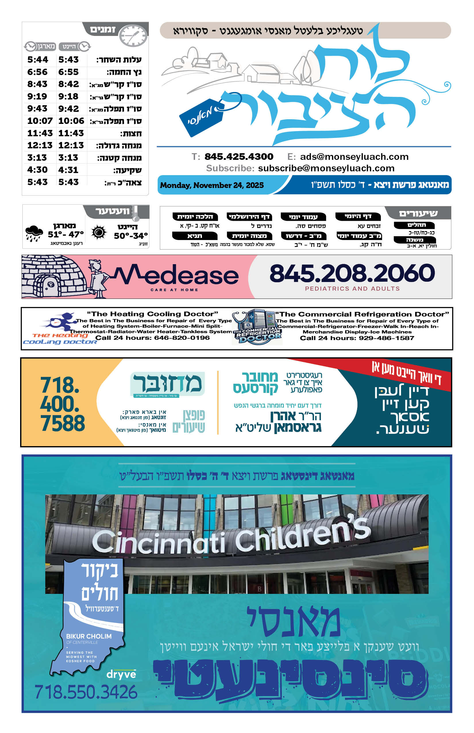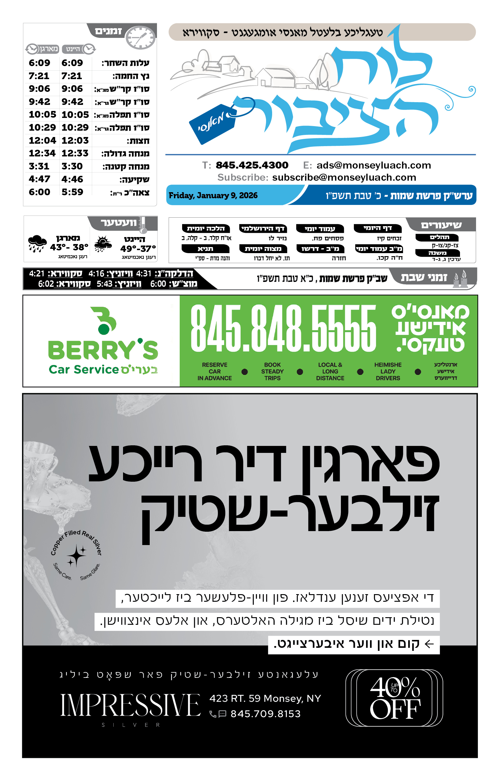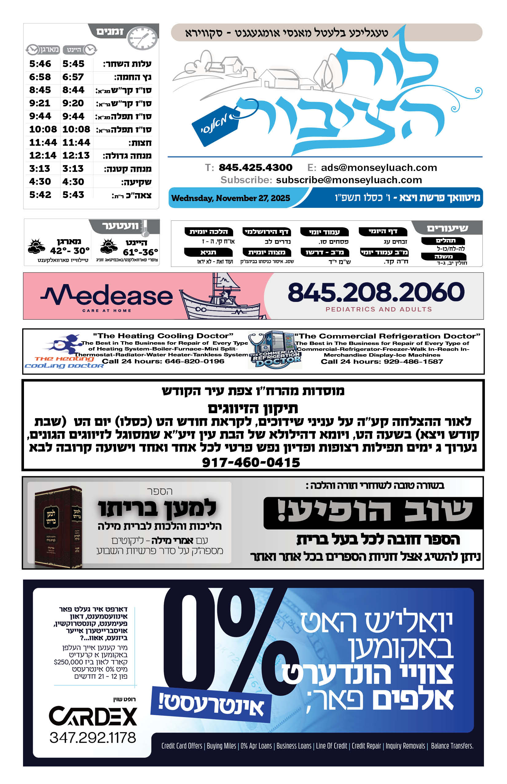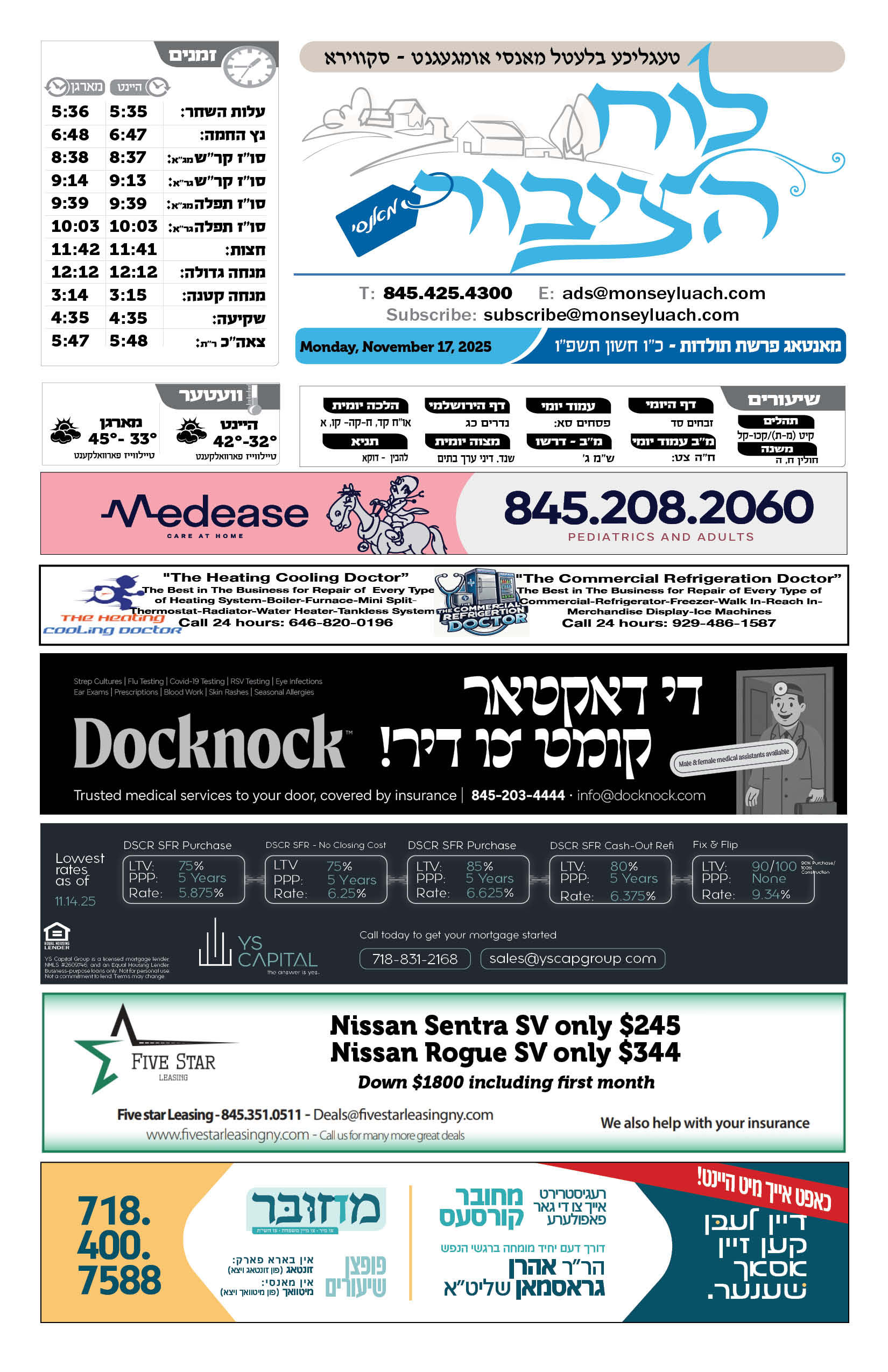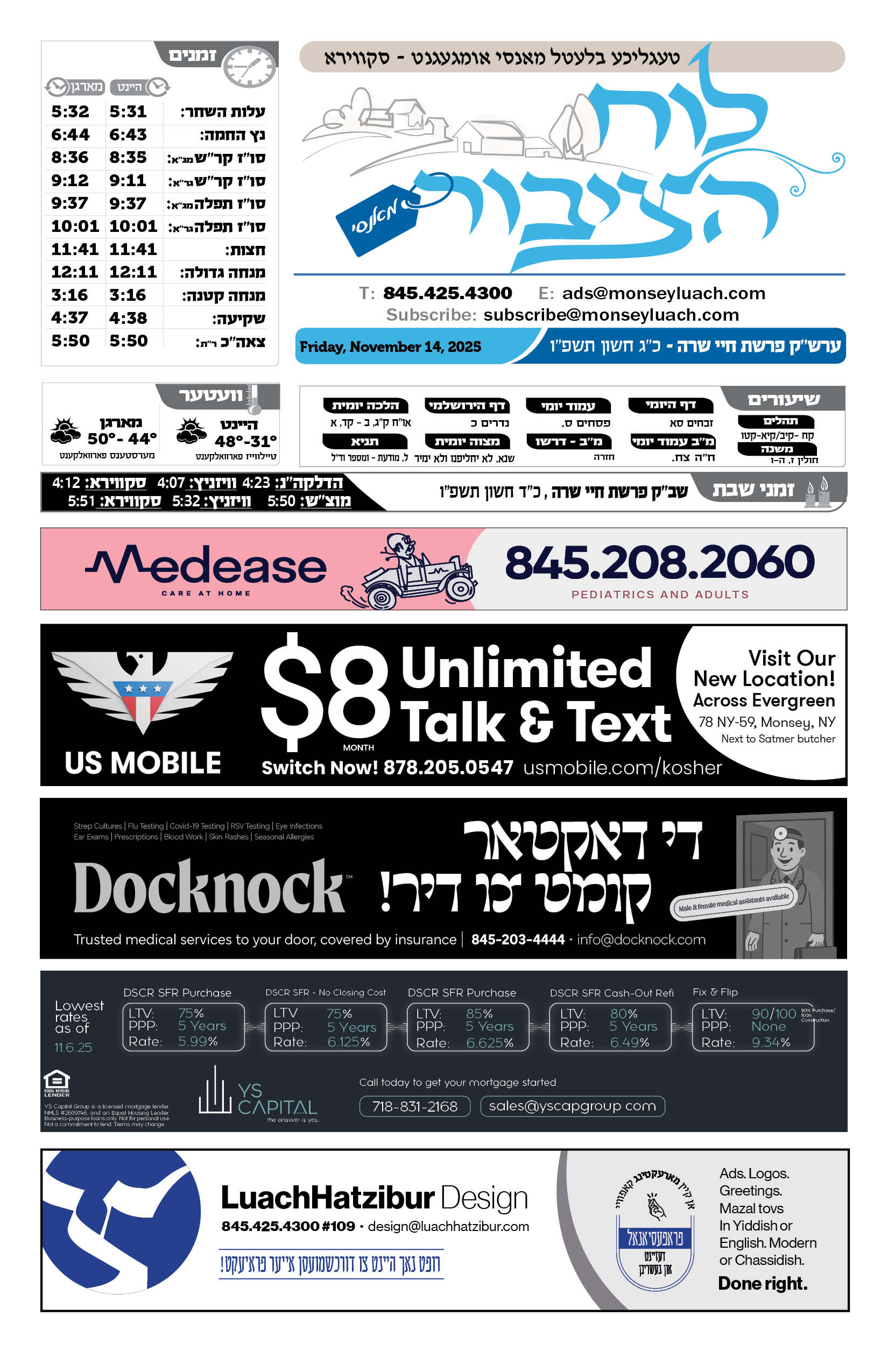 Since 2006, Luach Hatzibur has been keeping Boro Park residents informed about all important, relevant, and interesting happenings in the community. By popular demand, Luach Hatzibur launched its Monsey version in 2023 to the delight and excitement of Monsey residents.