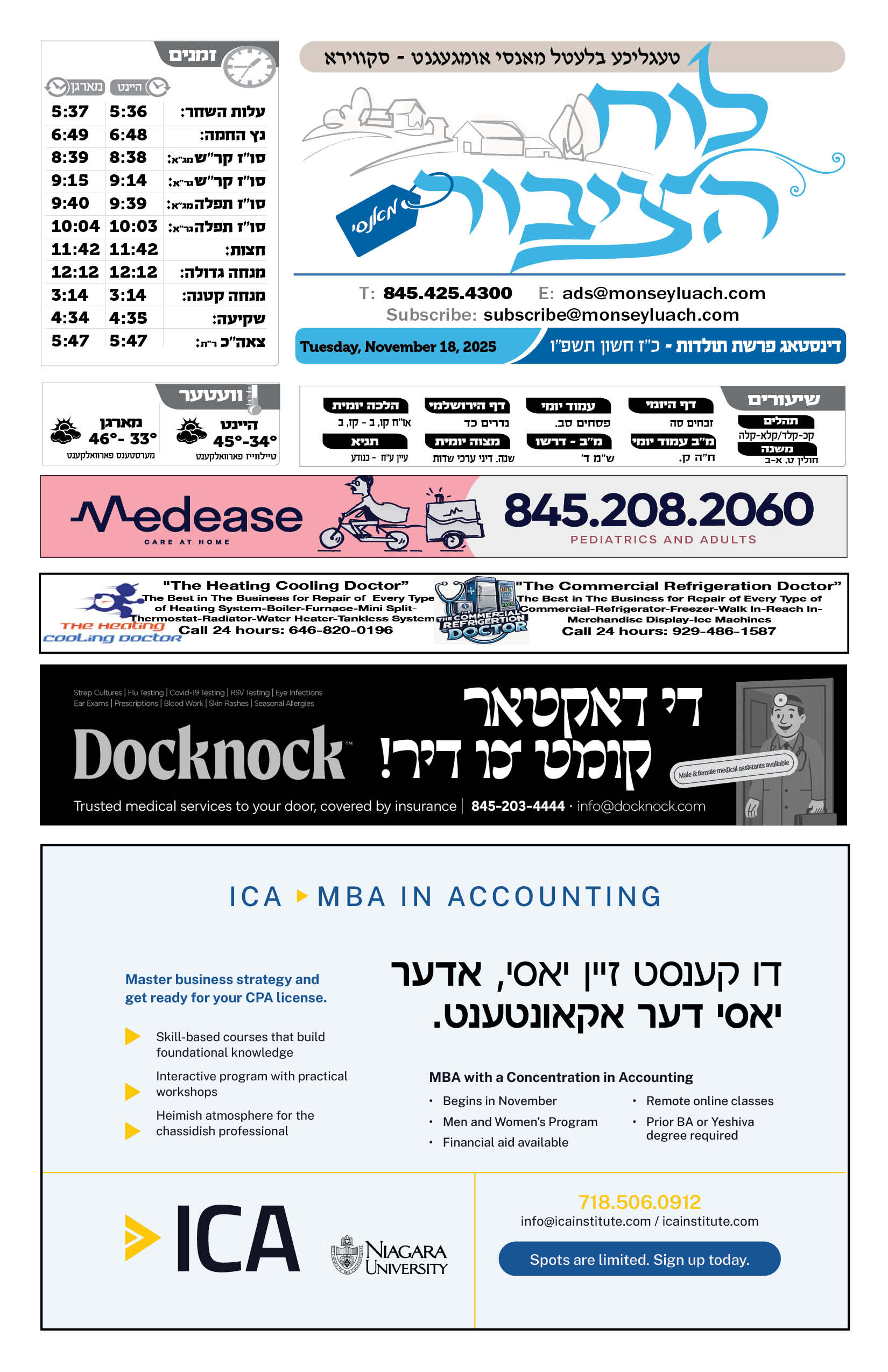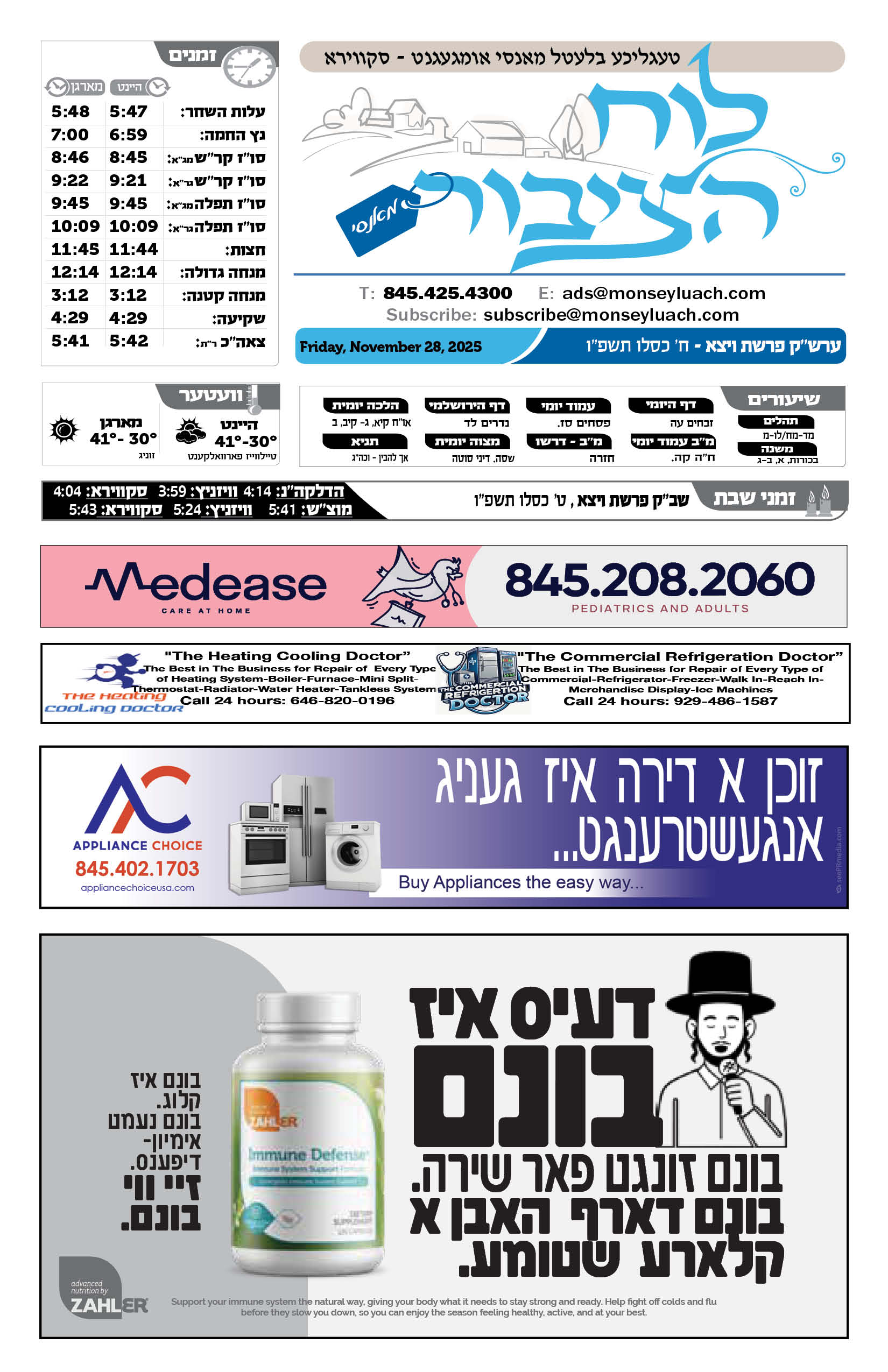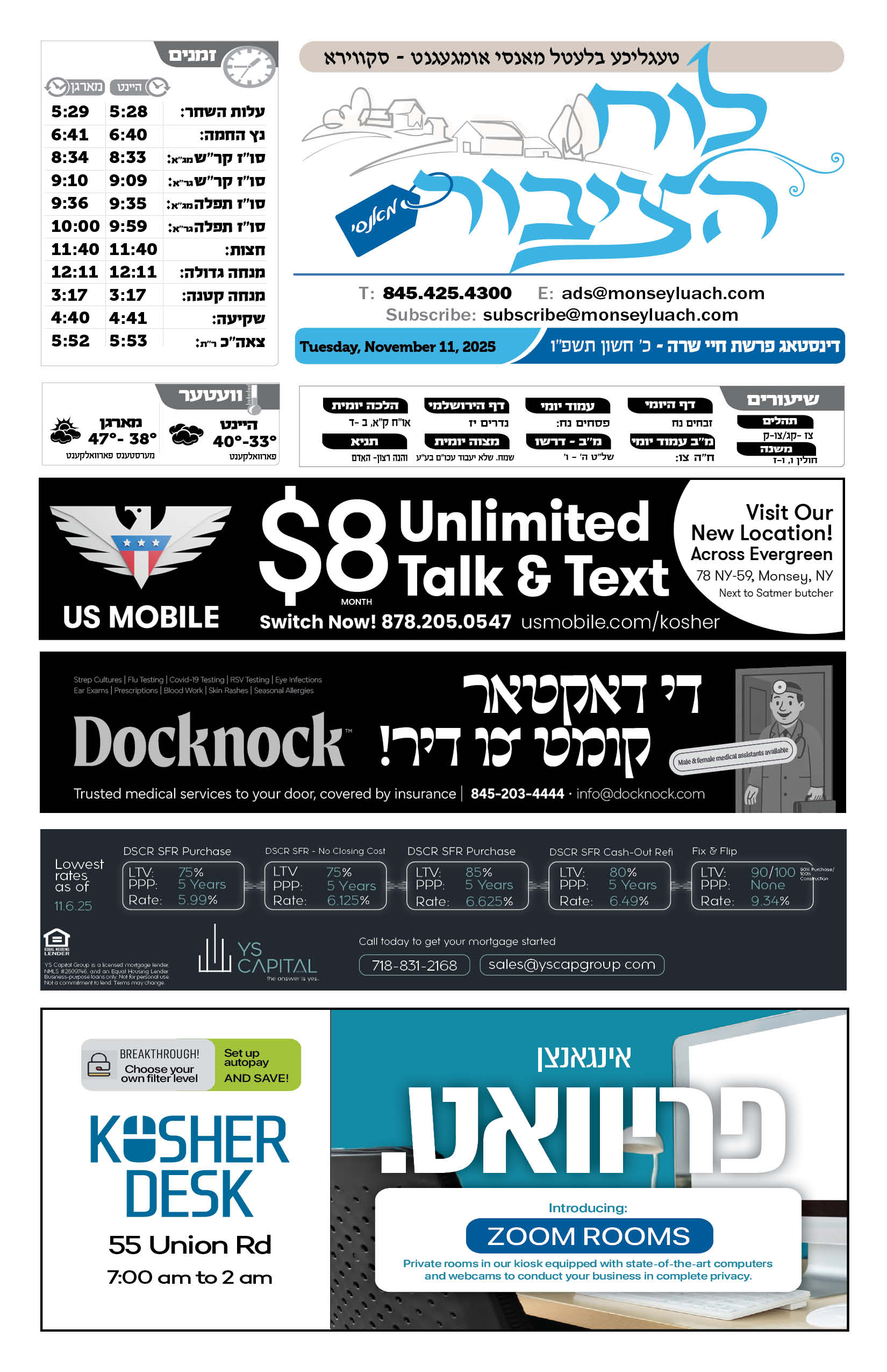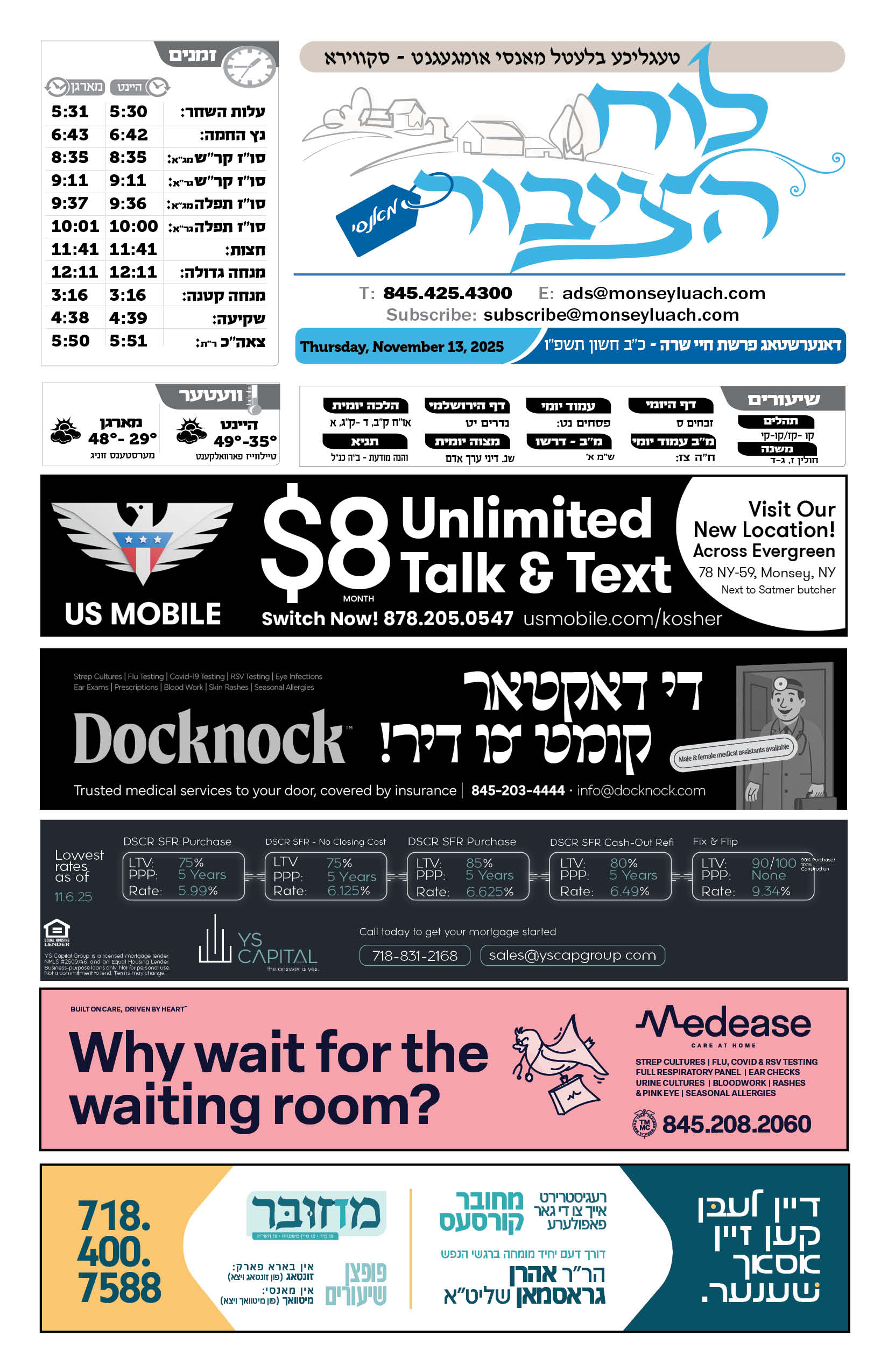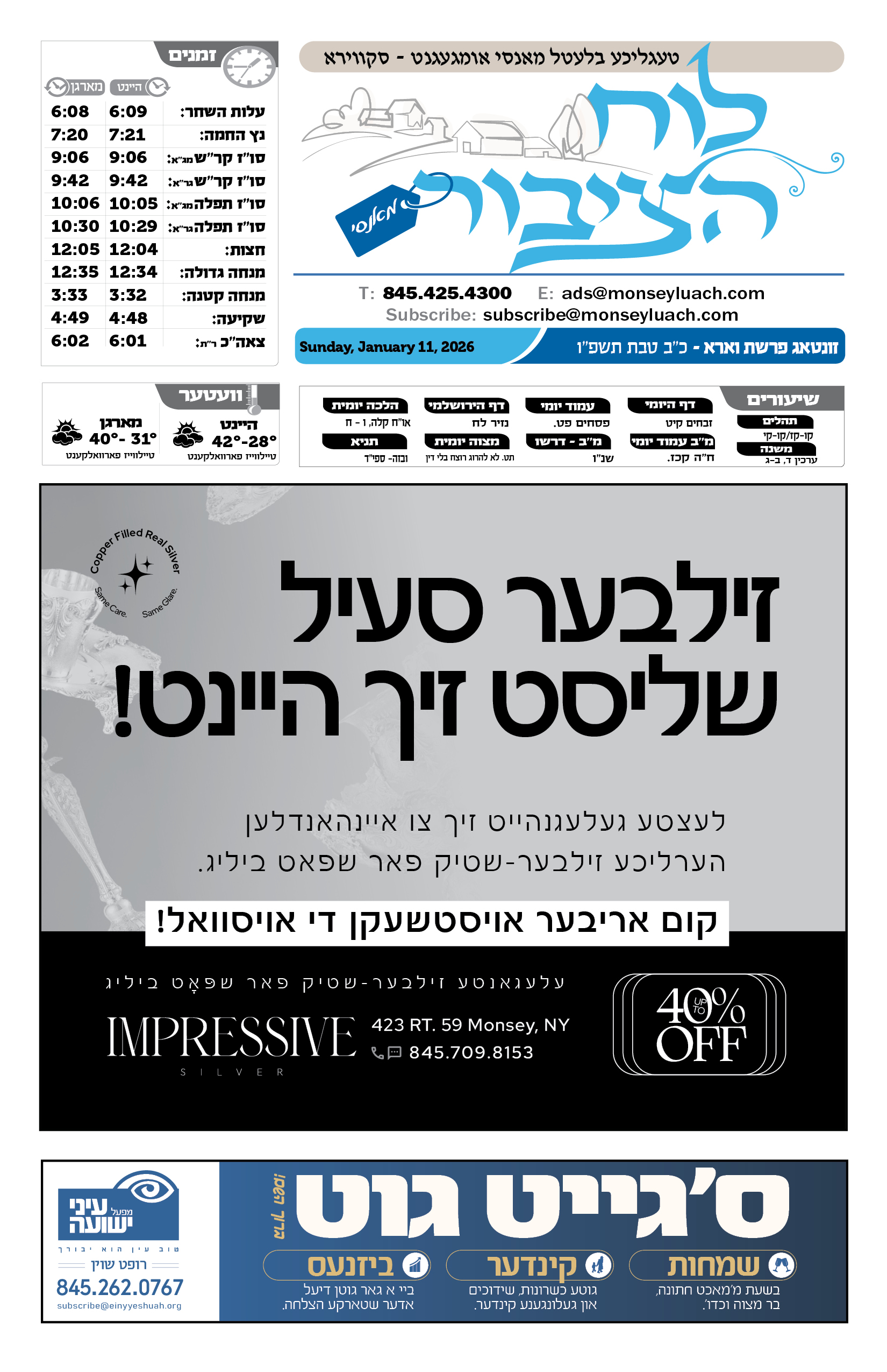 Since 2006, Luach Hatzibur has been keeping Boro Park residents informed about all important, relevant, and interesting happenings in the community. By popular demand, Luach Hatzibur launched its Monsey version in 2023 to the delight and excitement of Monsey residents.