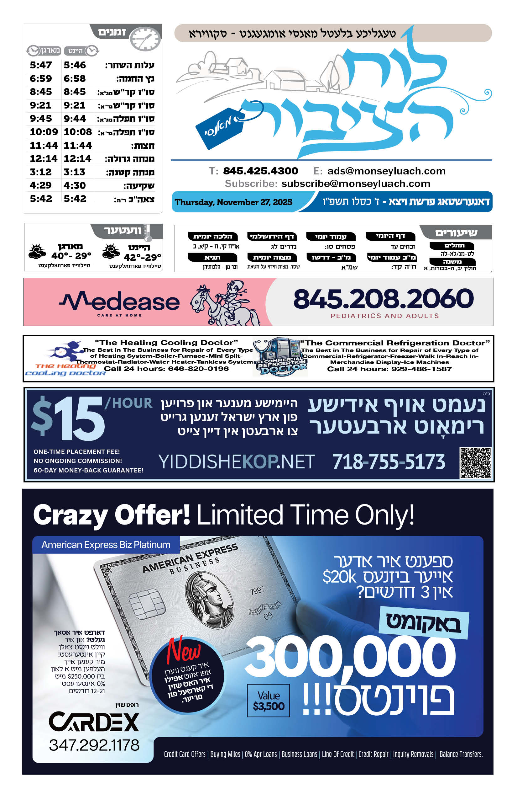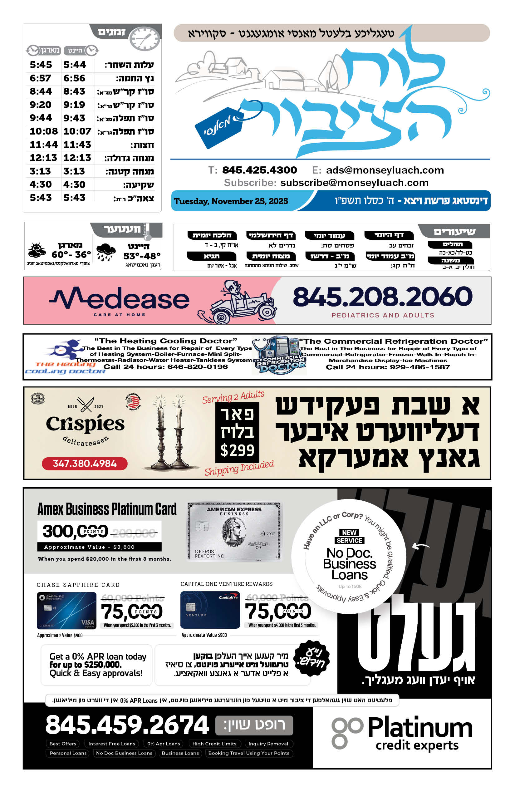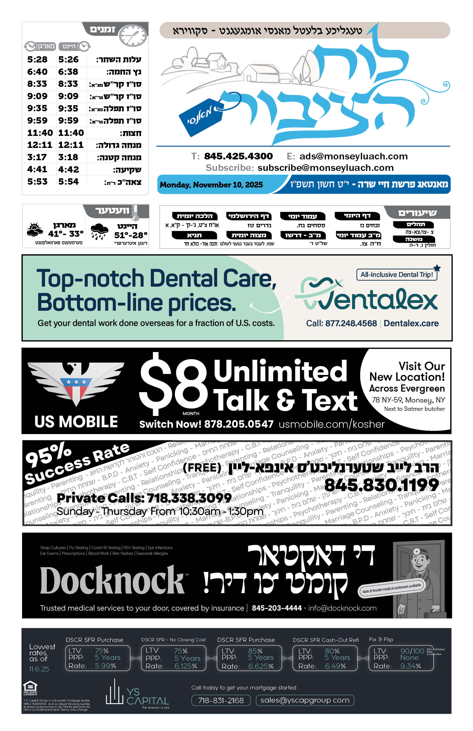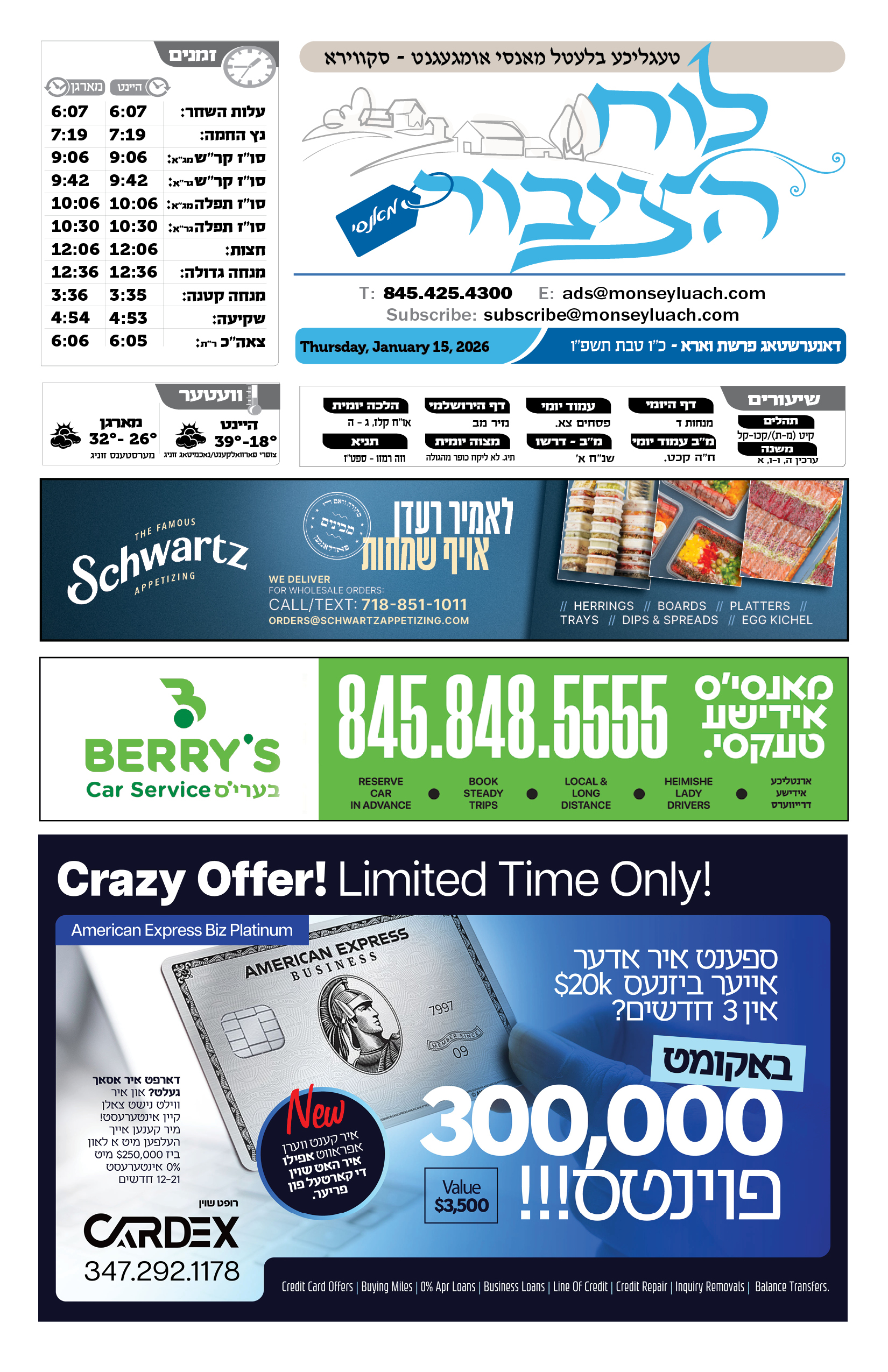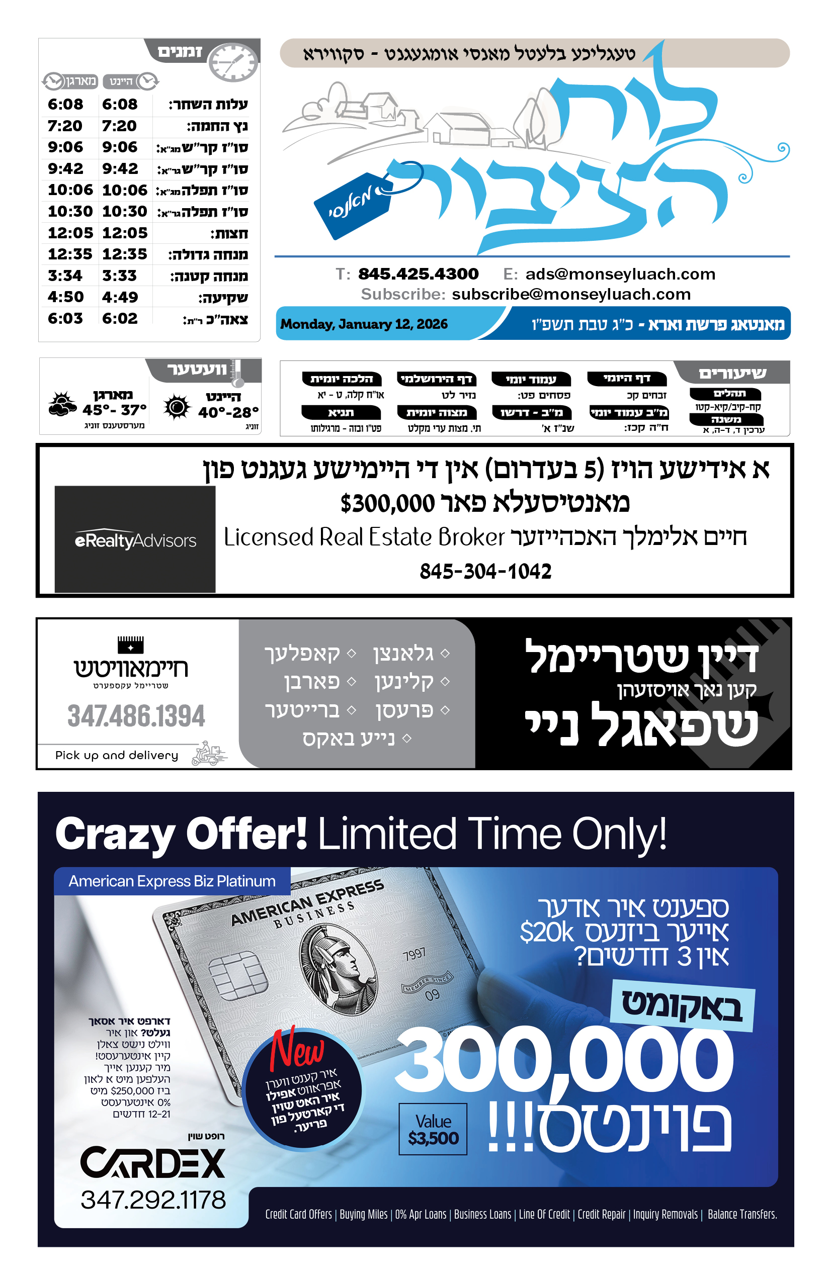 Since 2006, Luach Hatzibur has been keeping Boro Park residents informed about all important, relevant, and interesting happenings in the community. By popular demand, Luach Hatzibur launched its Monsey version in 2023 to the delight and excitement of Monsey residents.